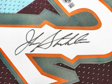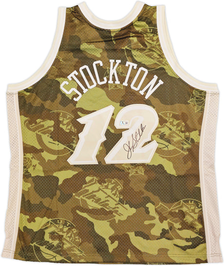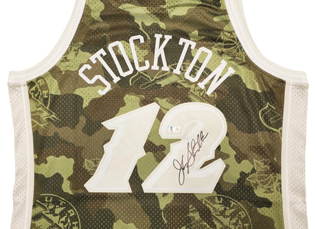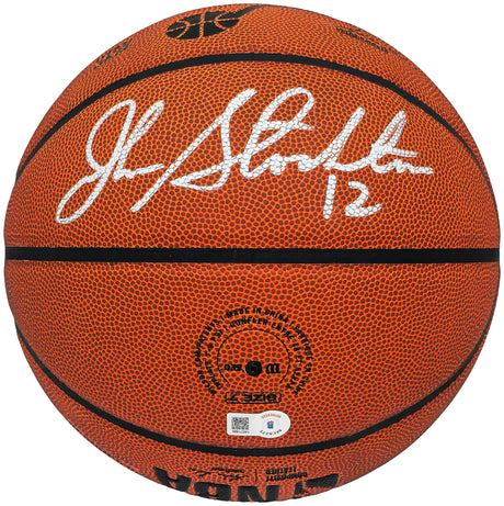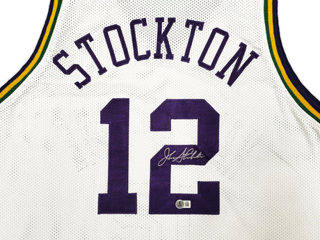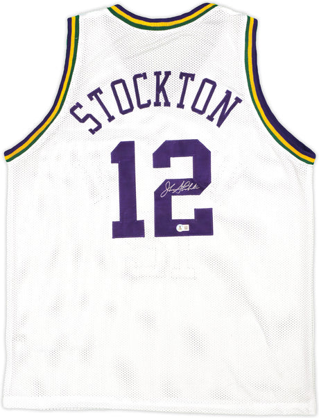 Utah Jazz John Stockton Autographed White Jersey Beckett BAS Witness Stock #224359