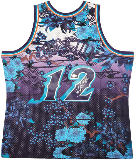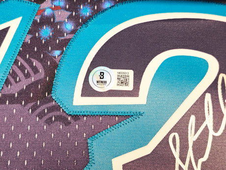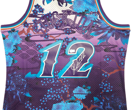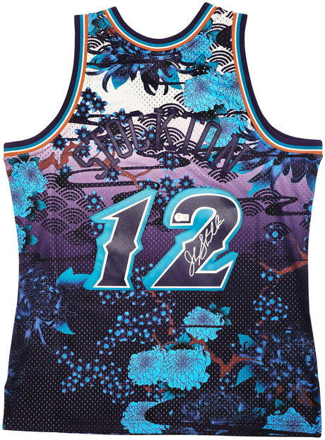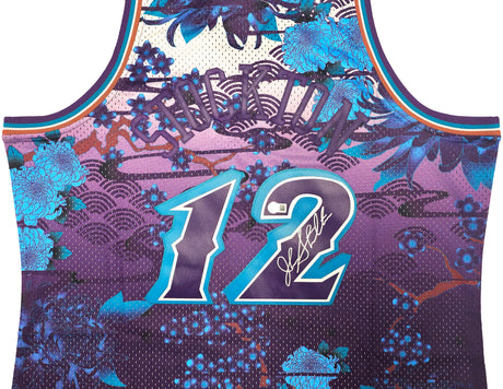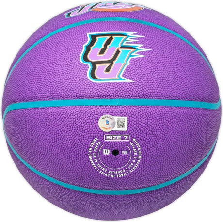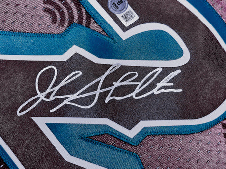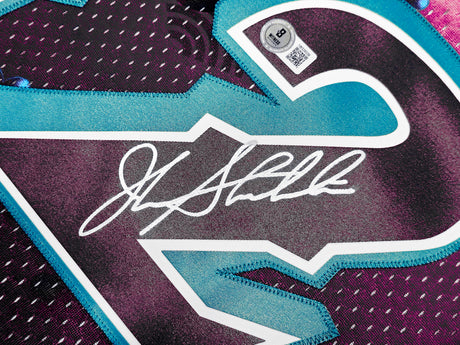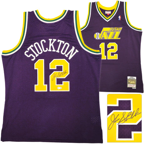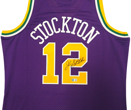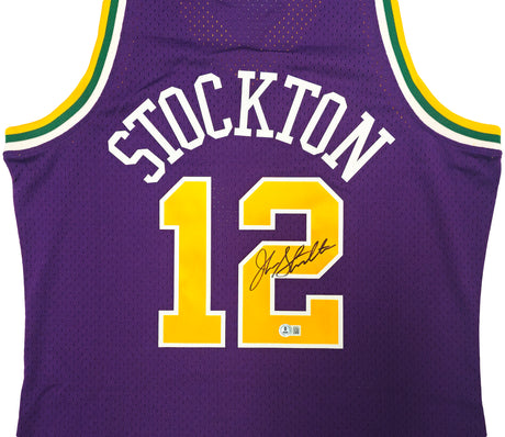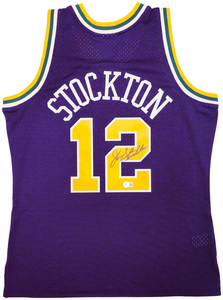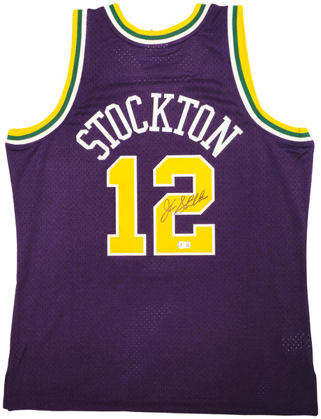Utah Jazz John Stockton Autographed Purple Jersey Beckett BAS Witness Stock #224360