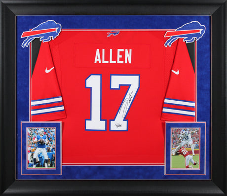 Bills Josh Allen Signed Red Nike Game Framed Jersey w/ Black Sig Fanatics