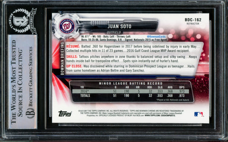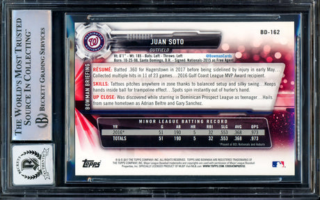 Juan Soto Autographed 2017 Bowman Draft Rookie Card #BD162 New York Mets Beckett BAS Stock #206607