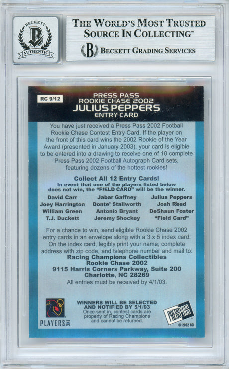 2002 Press Pass Rookie Chase #RC9 Julius Peppers RC Panthers BGS Autograph 10
