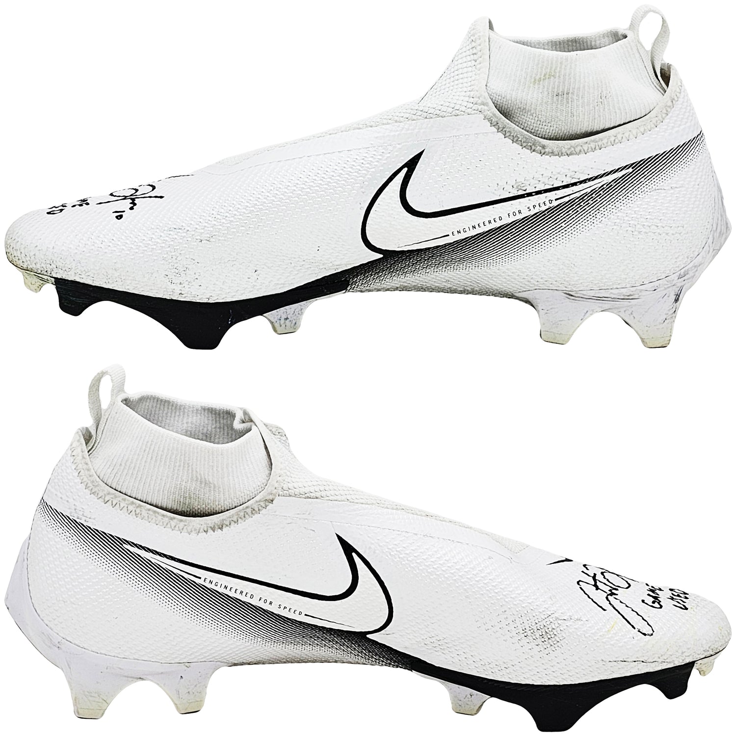 Justin Herbert Autographed Pair Of Game Used White & Black Nike Vapor 360 Pro Cleats Los Angeles Chargers "Game Used, Broncos 16 vs Chargers 19, 10/17/22, 238 Yds" Beckett BAS Witness #W453550 & #W453551