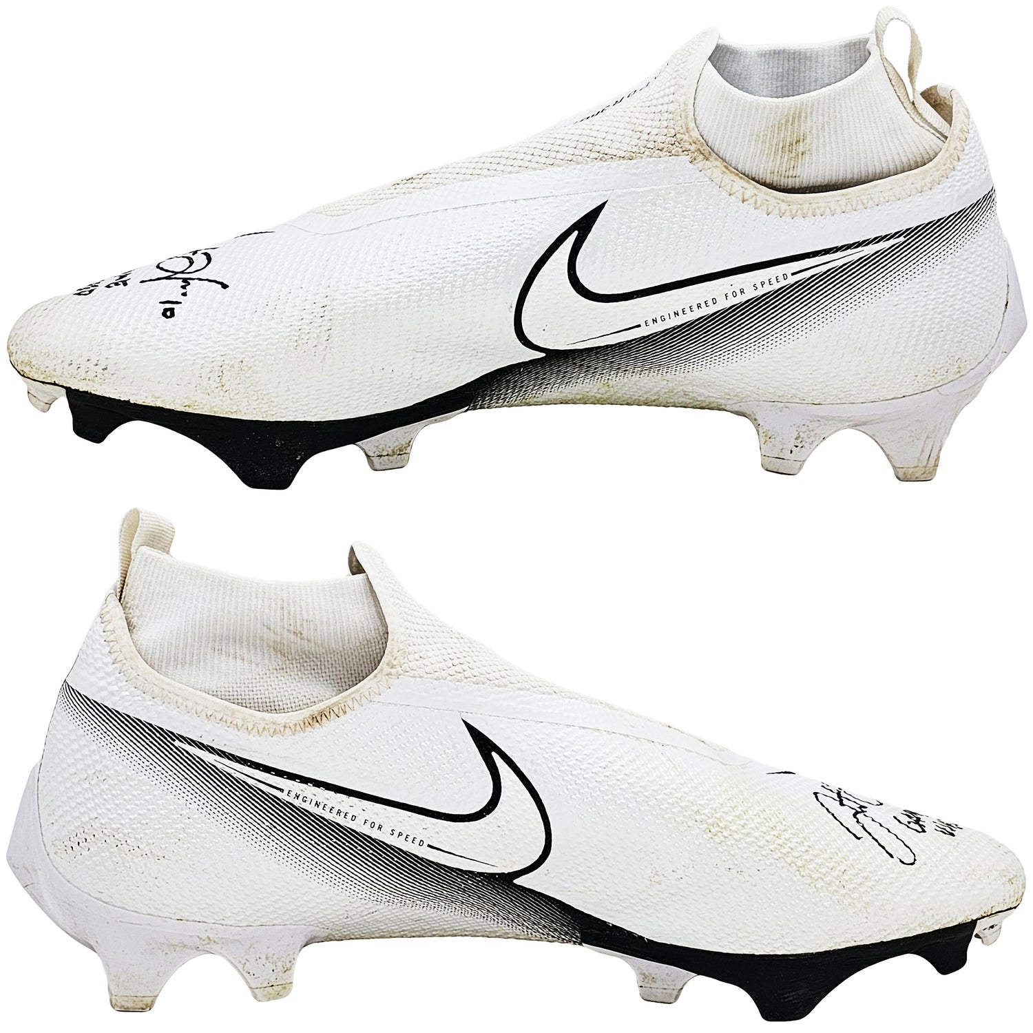 Justin Herbert Autographed Pair Of Game Used White & Black Nike Vapor 360 Pro Cleats Los Angeles Chargers "Game Used, Browns 28 vs Chargers 30, 10/9/22, 228 Yds, & 1 TD" Beckett BAS Witness #W453556 & #W453557