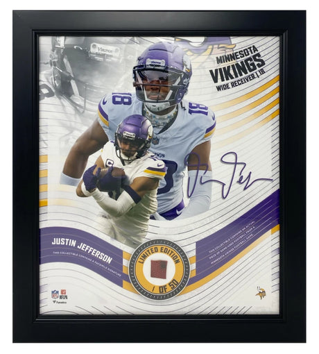 Justin Jefferson Minnesota Signed Framed Purple Football Jersey BAS