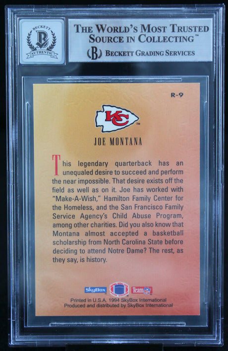 1994 Skybox Premium Revolution #R9 Joe Montana Kansas Chiefs BGS Autograph 10
