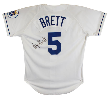 Very low stock (1 unit)$79Unit price /UnavailableRoyals George Brett Authentic Signed White Russell Athletic Jersey BAS #BU55013