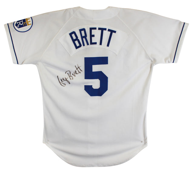 This Autographed White Russell Athletic Authentic Diamond Collection Jersey has been personally signed by MLB legend George Brett of the Kansas City Royals, making it a must-have collectible for devoted Royals fans and serious baseball memorabilia collectors alike. Widely recognized for his stellar 21-year career and induction into the Hall of Fame, Brett is one of only four players in MLB history with 3,000 hits, 300 home runs, and a lifetime .300 batting average—cementing his status as one of baseball’s all-time greats.