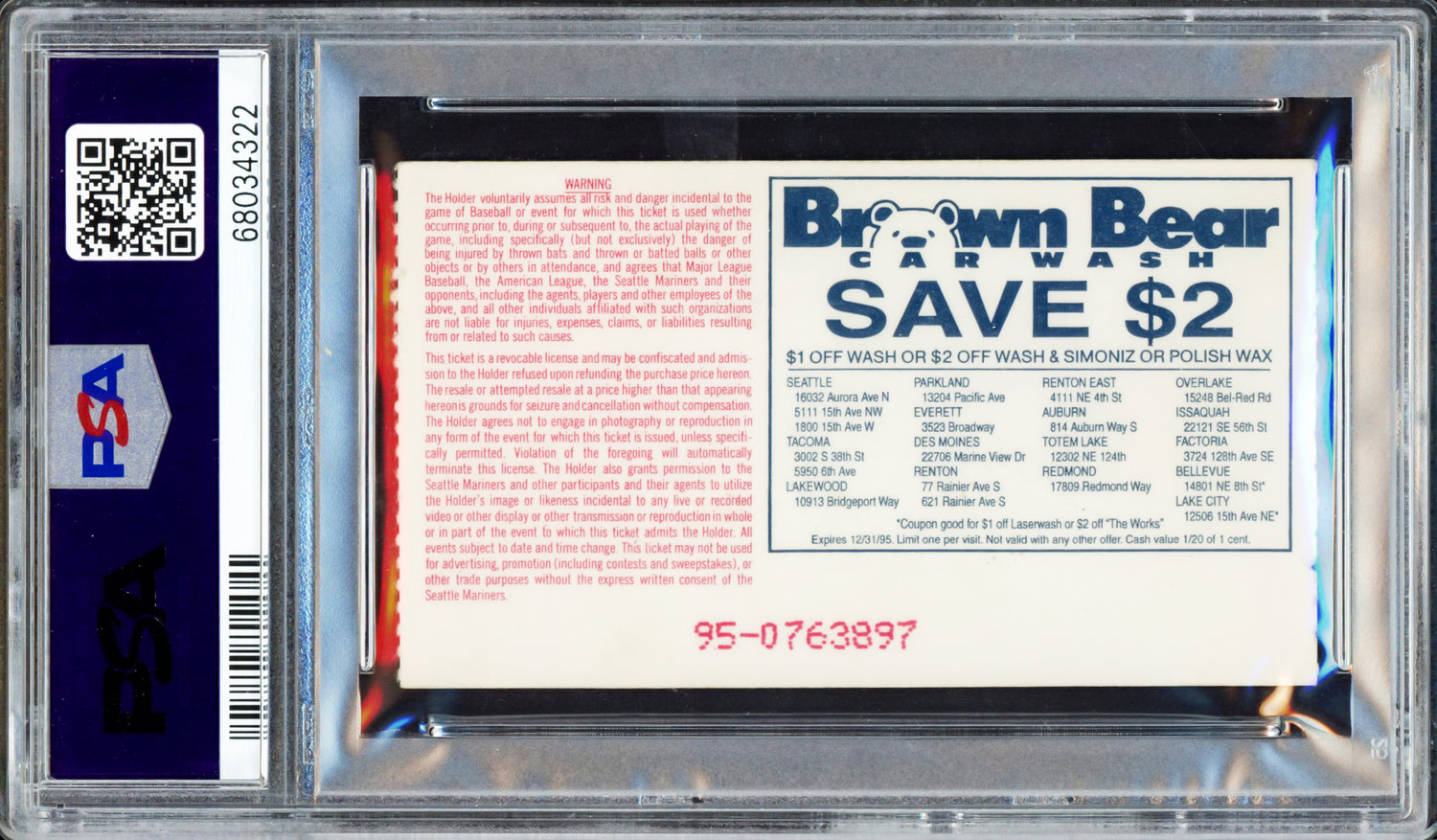 Autographed 1995 AL West Tie Breaker Ticket Stub Seattle Mariners PSA 6 Auto Grade Mint 9 With 4 Signatures Including Ken Griffey Jr. & Dan Wilson PSA/DNA #68034322