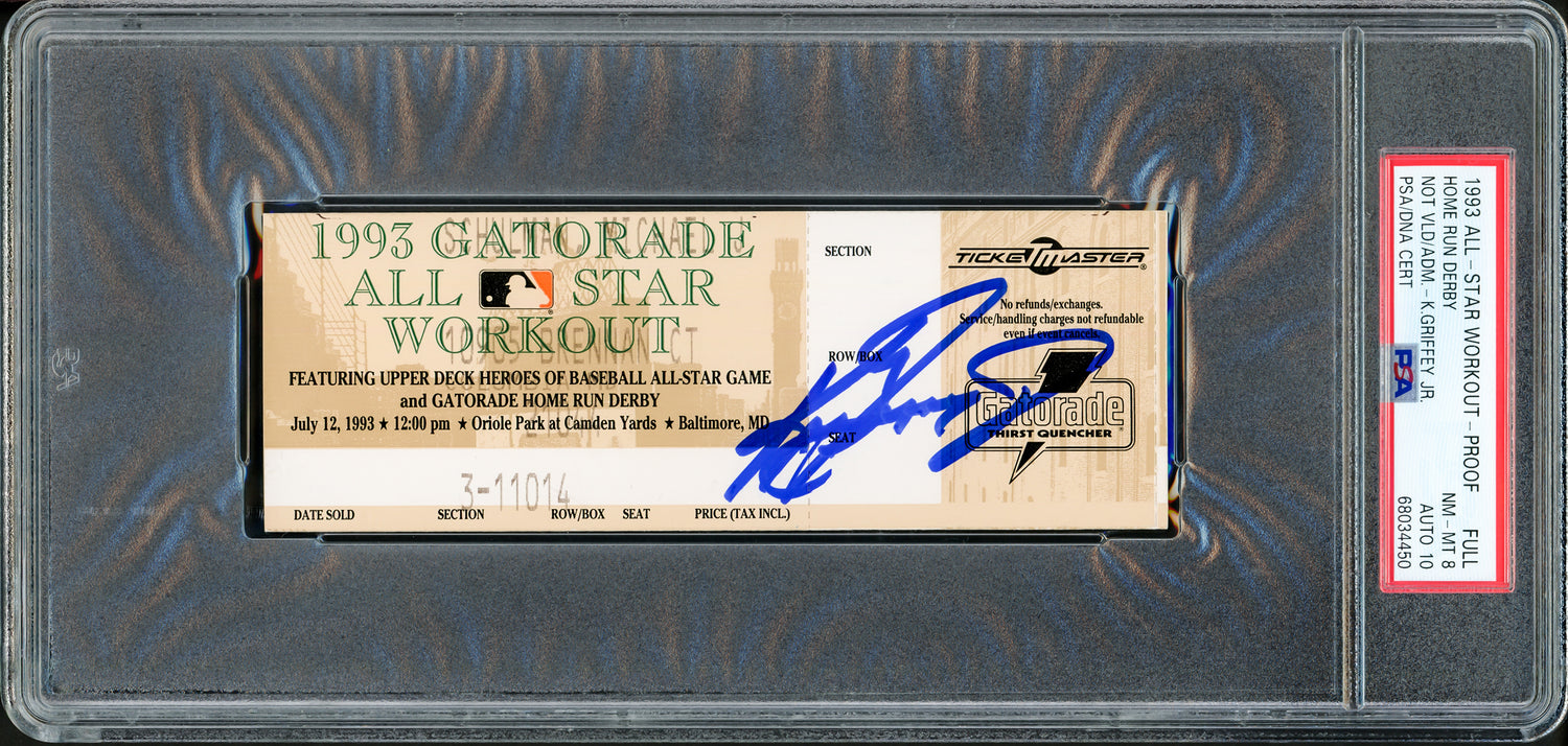 Ken Griffey Jr. Autographed 1993 All Star Workout Home Run Derby Ticket Seattle Mariners PSA 8 Auto Grade Gem Mint 10 Highest Graded PSA/DNA #68034450