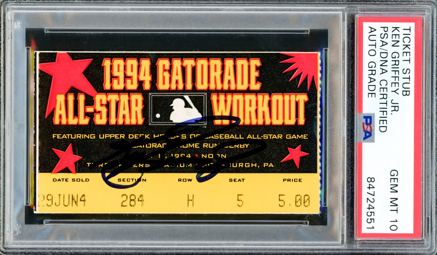 Ken Griffey Jr. Autographed 1994 All Star Home Run Derby Ticket Stub Seattle Mariners Auto Grade Gem Mint 10 Won HR Derby PSA/DNA #84724551