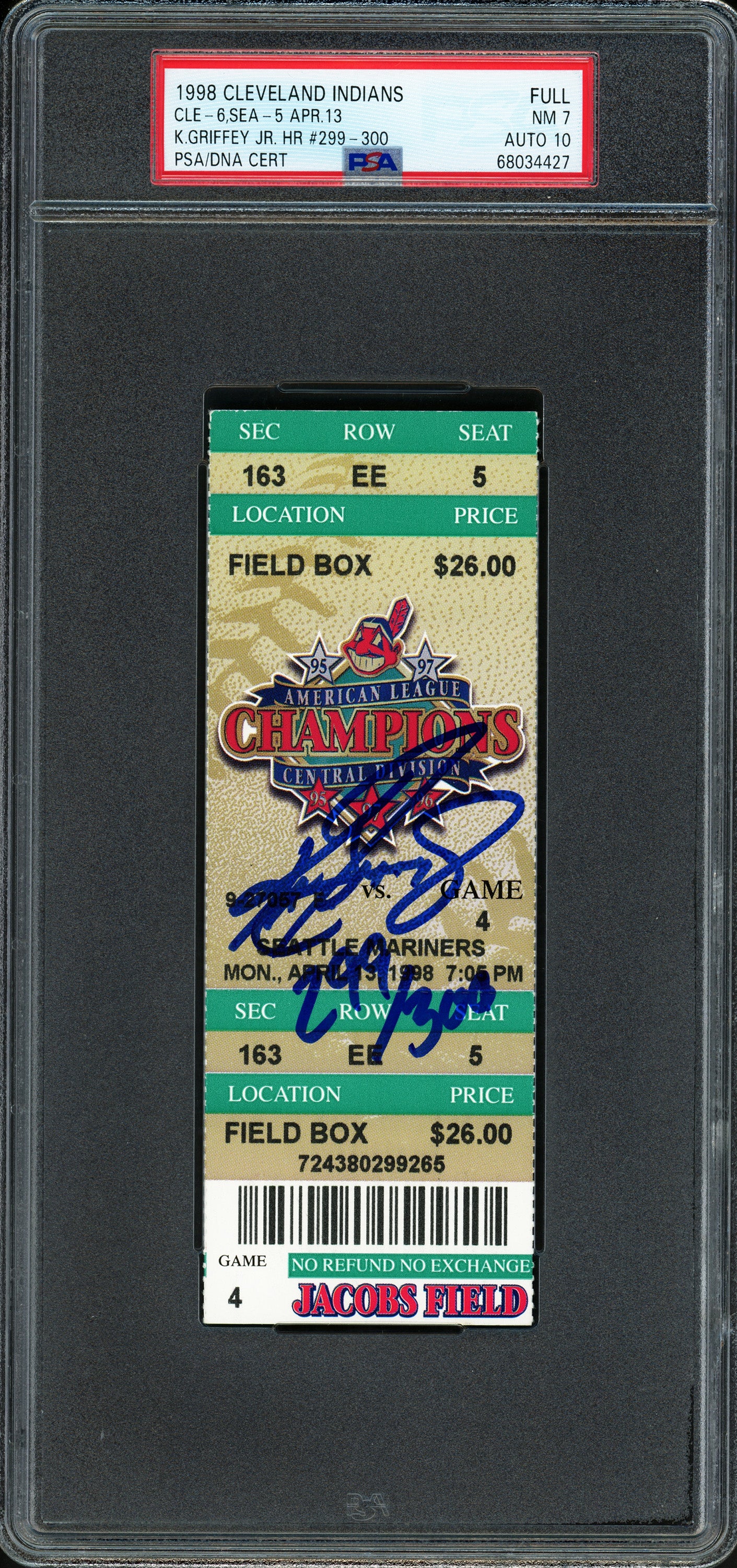Ken Griffey Jr. Autographed 1998 Cleveland Indians HR #299-300 Ticket Seattle Mariners PSA 7 Auto Grade Gem Mint 10 "299/300" PSA/DNA #68034427