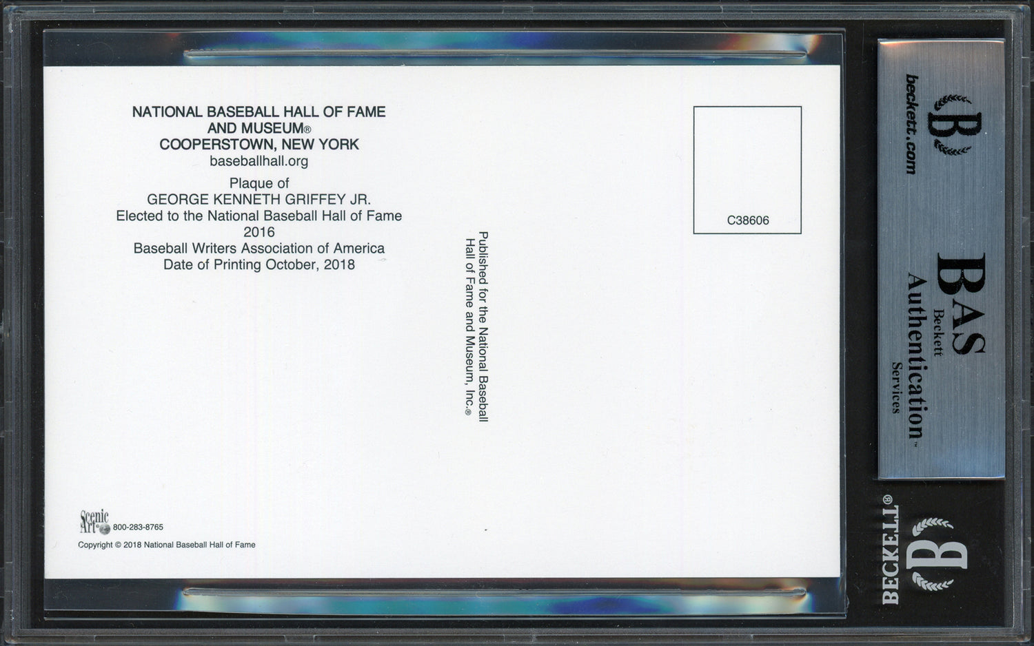 Ken Griffey Jr. Autographed Hall of Fame HOF Plaque Postcard Seattle Mariners Thick Signature Beckett BAS Stock #211249