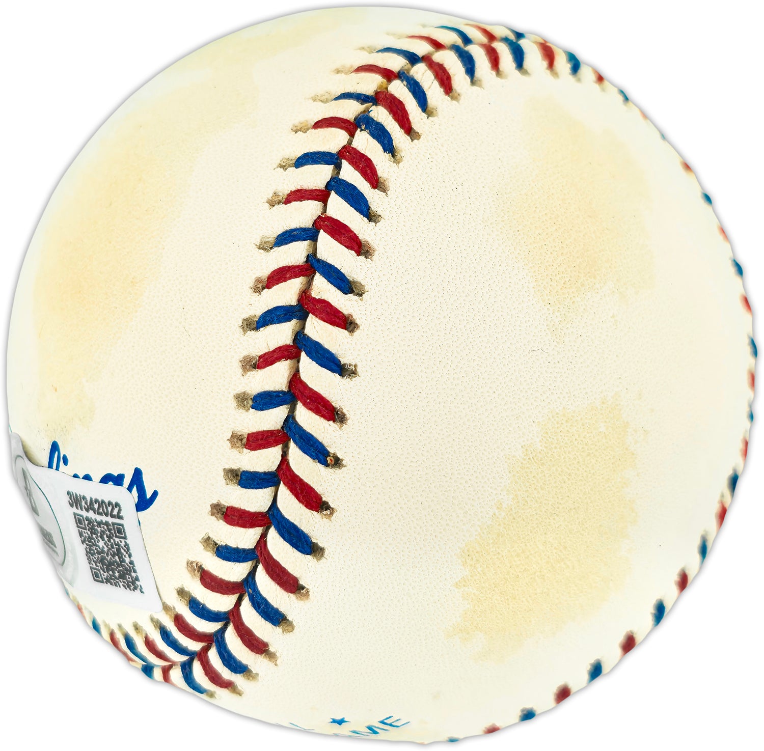 This rare autographed baseball comes fully authenticated by Beckett Authentication Services (BAS), featuring their tamper-proof witness hologram to guarantee authenticity and peace of mind.