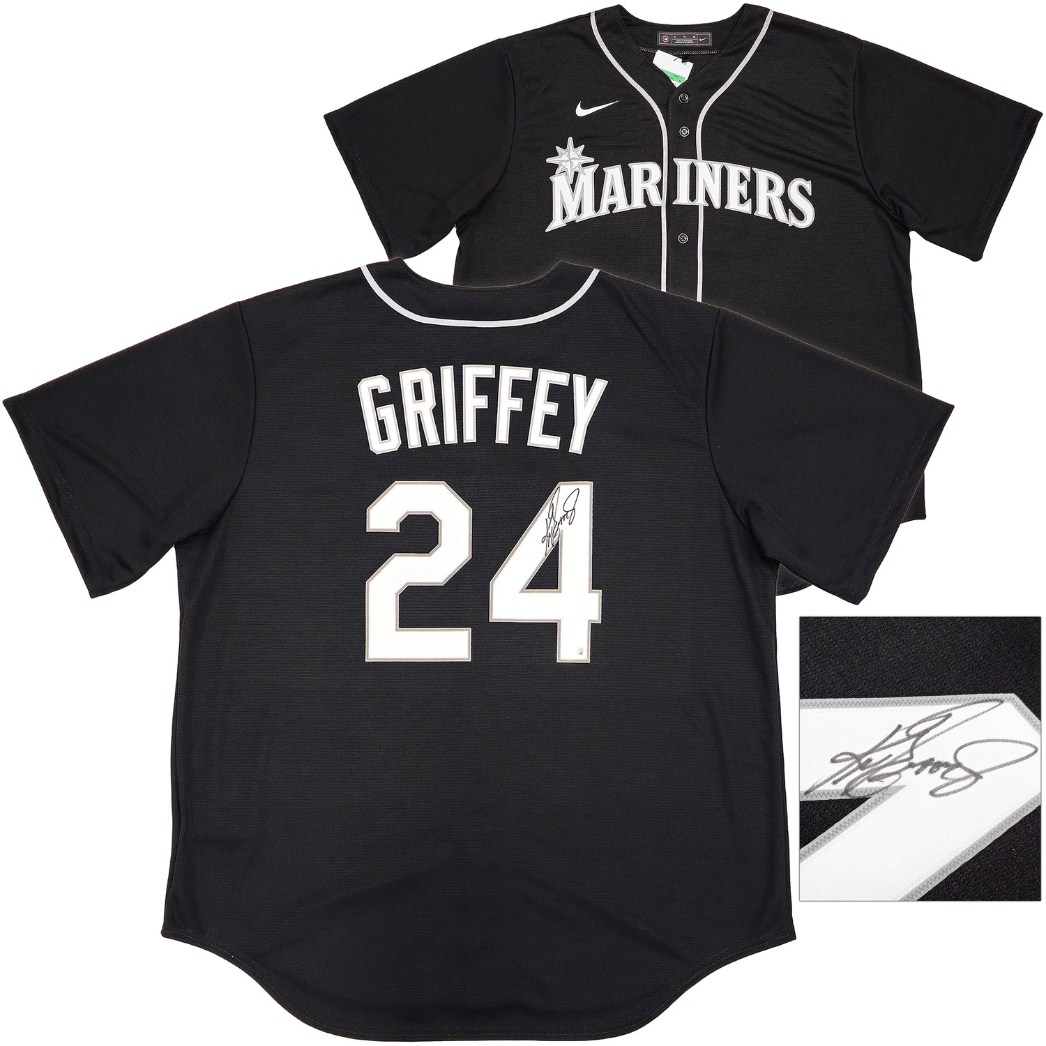 Own a piece of baseball history with this Black Nike Seattle Mariners Jersey, hand-signed by Hall of Famer Ken Griffey Jr. A legendary figure in MLB and one of the greatest outfielders of all time, Griffey Jr. left an unforgettable mark on the sport. This XL jersey is a must-have for Seattle Mariners fans and sports memorabilia collectors alike.