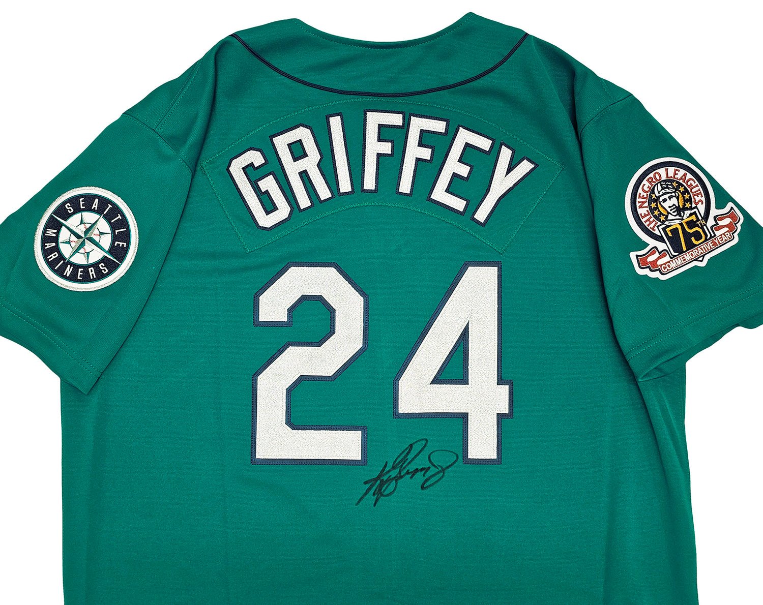 Seattle Mariners Ken Griffey Jr. Autographed Teal Authentic Mitchell & Ness 1995 Authentic Cooperstown Collection Jersey Size XL Negro League Patch Beckett BAS Witness Stock #212468