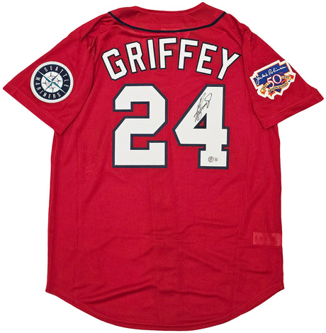Nothing encapsulates a player's impact on the game quite like a jersey. Our selection of autographed Ken Griffey Jr. jerseys reflects his time with the Seattle Mariners and Cincinnati Reds, each garment a testament to his phenomenal career. Featuring authenticated signatures, these jerseys are perfect centerpieces for any baseball enthusiast's collection. For those concerned about authenticity, rest assured with our Authenticity Guaranteed promise.
