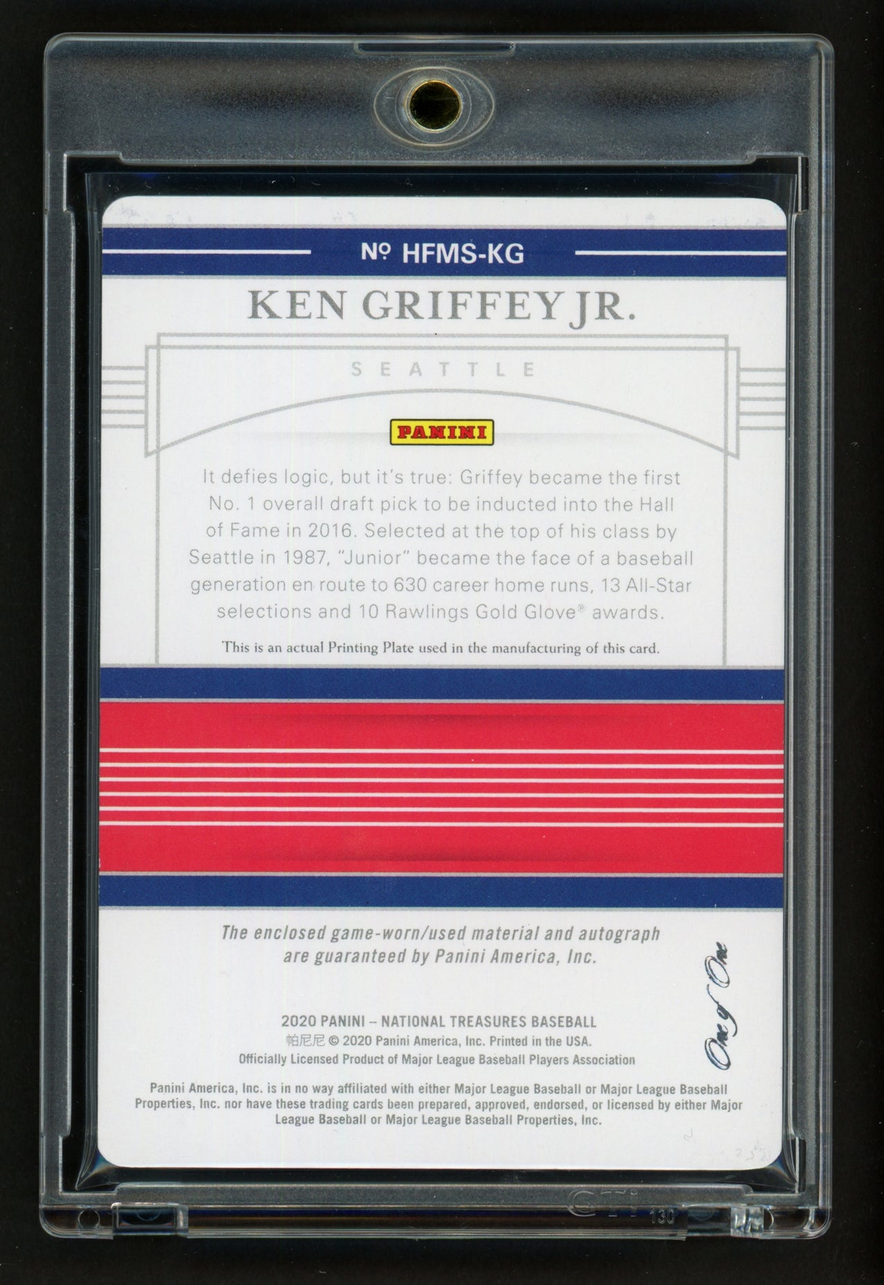 Ken Griffey Jr. Autographed 2020 Panini National Treasures Printing Plate Patch Card #HFMS-KG Seattle Mariners #1/1 SKU #258189
