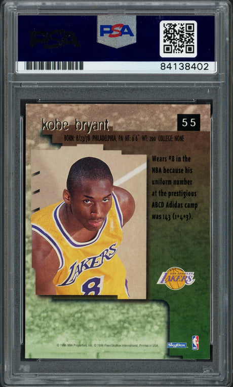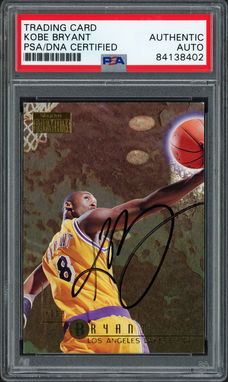 Very low stock (1 unit)$13,139Unit price /UnavailableKobe Bryant Autographed 1996-97 Skybox Premium Rookie Card #55 Los Angeles Lakers PSA/DNA #84138402