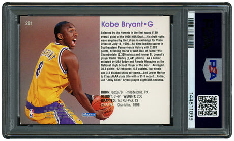 Kobe Bryant Autographed 1996 Hoops Rookie Card #281 Los Angeles Lakers PSA/DNA #144511099