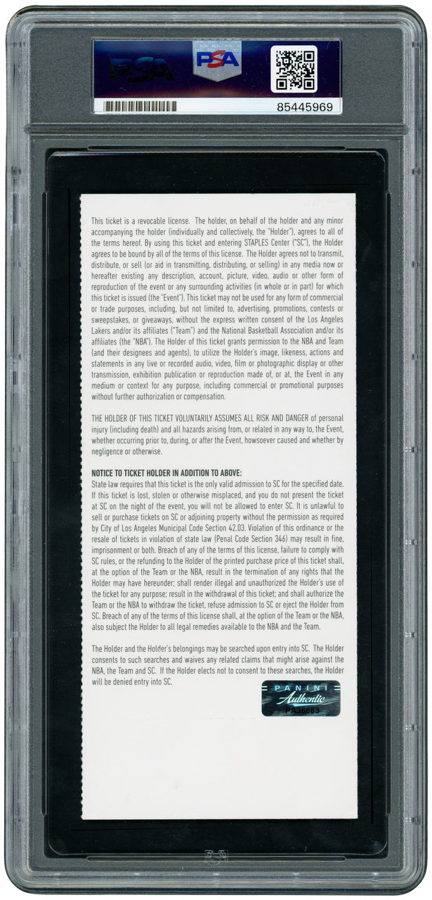Own a piece of NBA history with this 2010 NBA Finals Game 4 Full Ticket hand signed by Kobe Bryant—a legendary collectible from an unforgettable series. Game 4 of the 2010 NBA Finals marked a pivotal moment in the showdown between the Los Angeles Lakers and the Boston Celtics, and this full ticket captures the intensity of that night. Kobe Bryant’s signature cements this item as a must-have for serious collectors and Lakers fans alike. Authenticated and encapsulated by the industry's leading experts, this ticket is more than memorabilia—it's a timeless tribute to greatness.