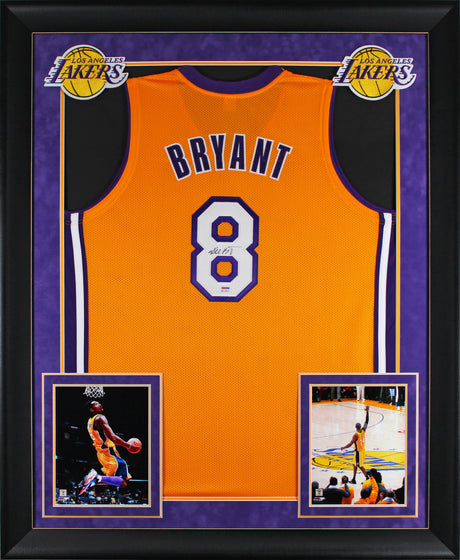 Kobe Bryant Signed Yellow Framed Pro Style Jersey w/ Rookie Signature PSA/DNA