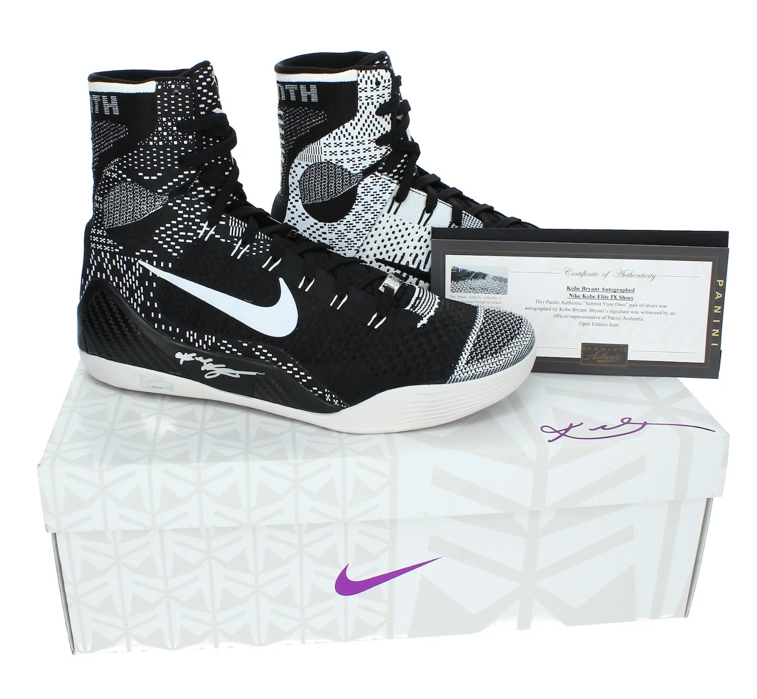 Authenticated by Panini Authentic—Kobe Bryant’s official autograph partner—this signed pair carries a COA and matching hologram that confirm the signature for long-term collecting confidence. For serious Lakers and NBA collectors, it’s a verified authentic piece that honors Kobe’s legacy and the iconic Kobe 9 Elite design.