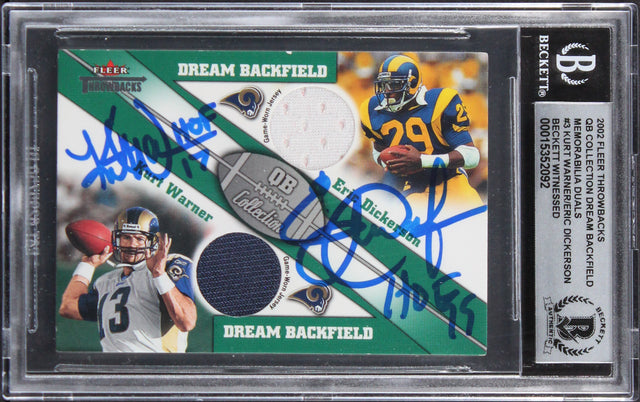 - Dual autographs from Kurt Warner (HOF 2017) and Eric Dickerson (HOF 1999)