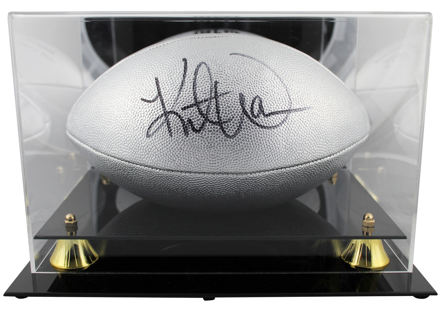 Kurt Warner Signed Wilson Replica Duke Metallic Silver Football W/ Case BAS Wit