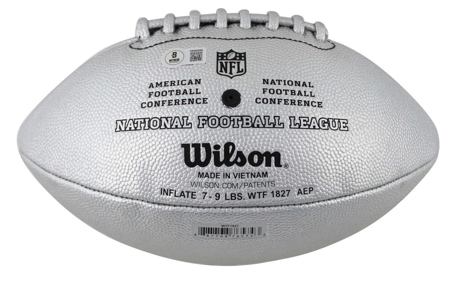 • Metallic Silver Edition – A stunning, unique variation of the classic NFL football, perfect for display.