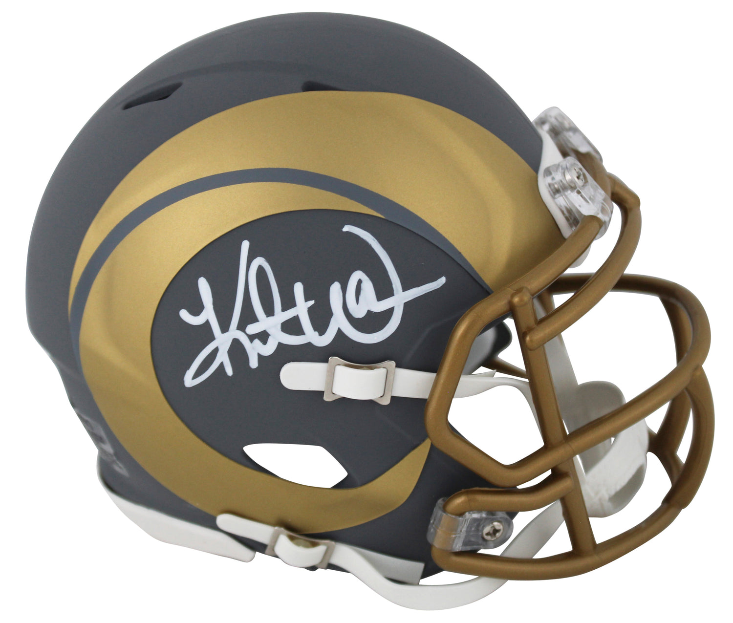 Own a piece of Los Angeles Rams history with this Autographed Alternate Slate Speed Mini Helmet, personally signed by Hall of Fame quarterback Kurt Warner. A legendary figure in Rams history, Warner led the team to a Super Bowl XXXIV victory and cemented his place as one of the greatest quarterbacks of all time.