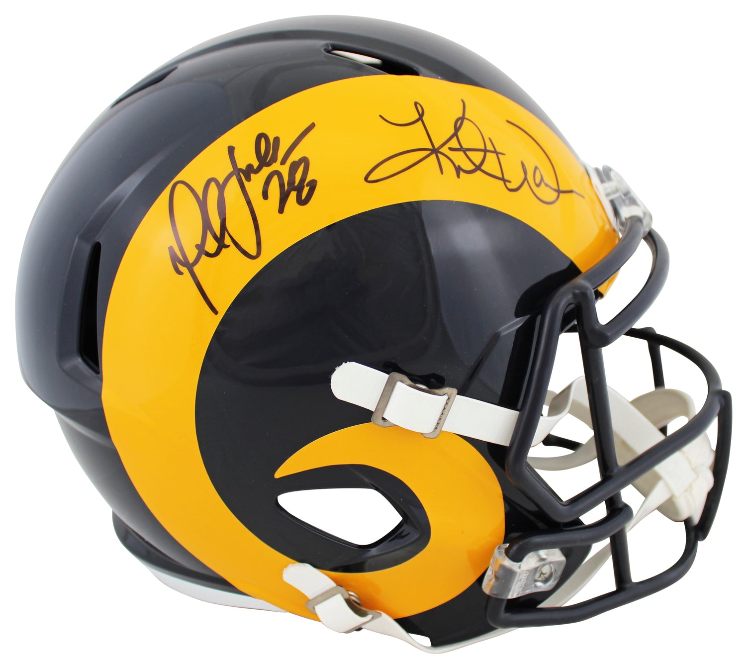 Rams Kurt Warner & Marshall Faulk Signed 81-99 TB F/S Speed Rep Helmet BAS Wit