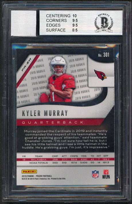 Cardinals Kyler Murray Signed 2019 Panini Prizm #301 RC Card Auto 10! BAS Slab