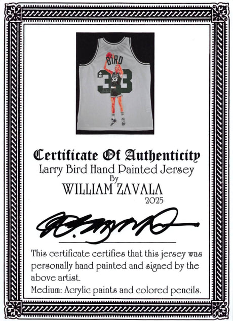 Larry Bird Signed Hand Painted LE 1/1 By William Zavala Framed Jersey BAS Wit