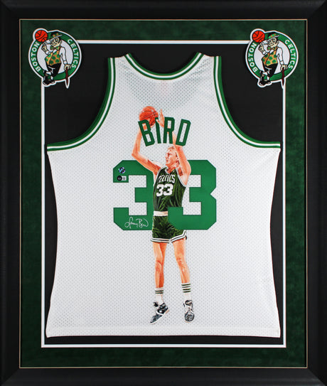 Larry Bird Signed Framed Celtics Jersey Beckett Holo