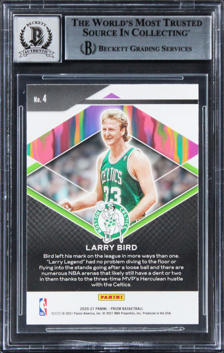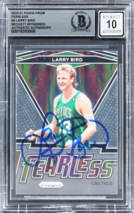 Celtics Larry Bird Signed 2020 Panini Prizm Fearless #4 Card Auto 10! BAS Slab