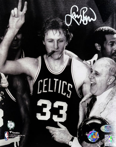 Larry Bird Signed 8x10 Boston Celtics vs Lakers Photo Bird+PSA/DNA