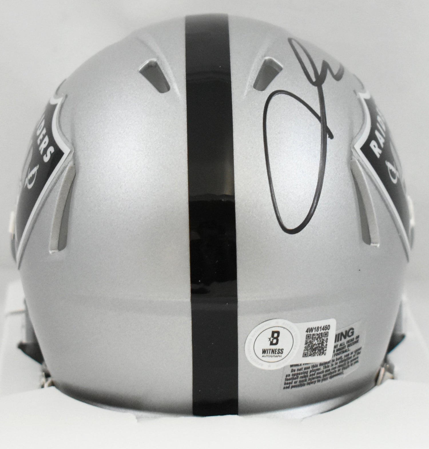 - Authentic Aidan O'Connell hand signature on official Las Vegas Raiders Riddell Speed Mini Helmet