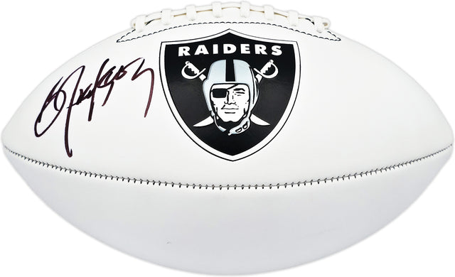 Bo Jackson Autographed Oakland Raiders White Logo Football Beckett BAS Witness Stock #239857