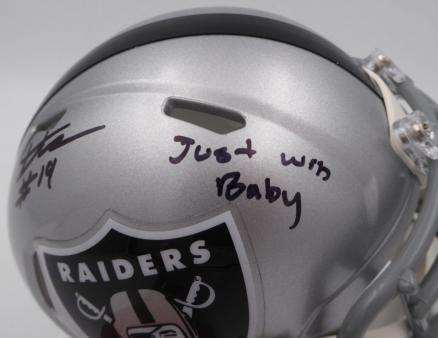 DJ D.J. Turner Autographed Las Vegas Raiders Mini Helmet "Just Win Baby" Beckett BAS QR #2W133251