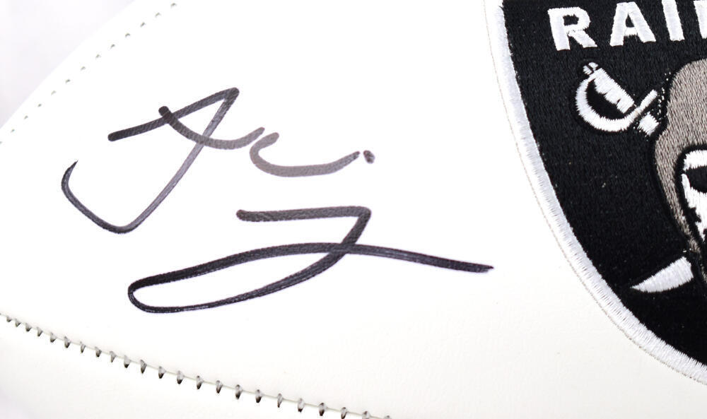 Own a piece of Las Vegas Raiders history with this hand-signed Jakobi Meyers Raiders Logo Football. Perfect for dedicated Raiders fans and memorabilia collectors, this autographed football is a must-have addition to any collection.
