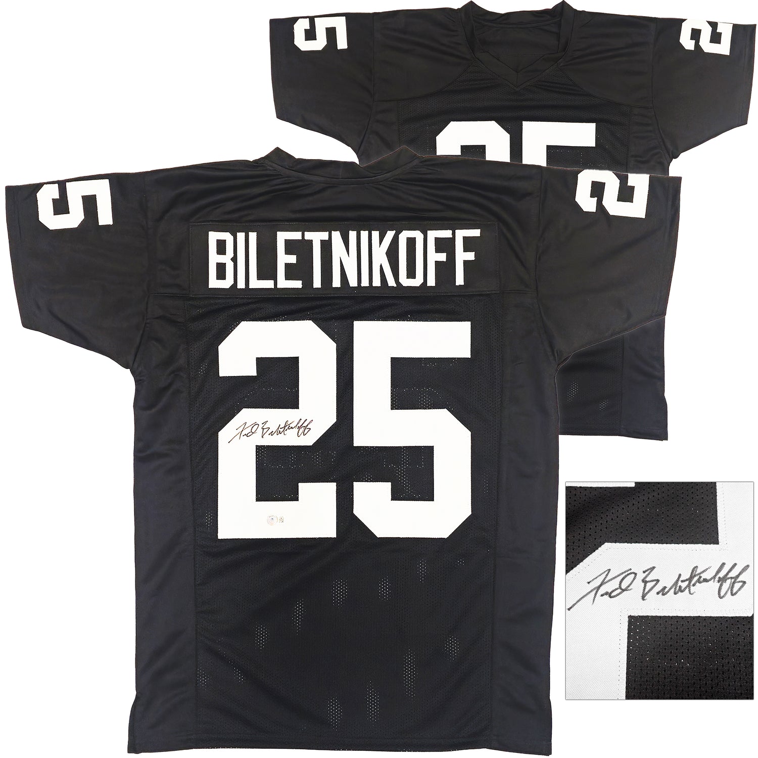 Oakland Raiders Fred Biletnikoff Autographed Black Jersey Beckett BAS Witness Stock #232610