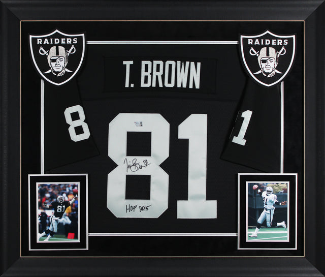 Raiders Tim Brown "HOF 2015" Signed Black M&N TB Framed Jersey Fanatics