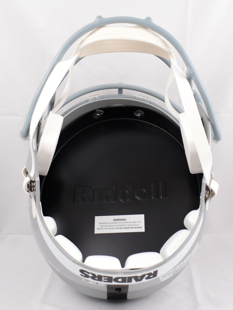 Own a piece of Raiders history with this hand-signed Sebastian Janikowski Riddell Full-Size Speed Replica Helmet, featuring the legendary "Just Win Baby" inscription. A true collector’s item for devoted Raiders fans and sports memorabilia enthusiasts, this helmet represents the legacy of one of the NFL’s most powerful kickers.
