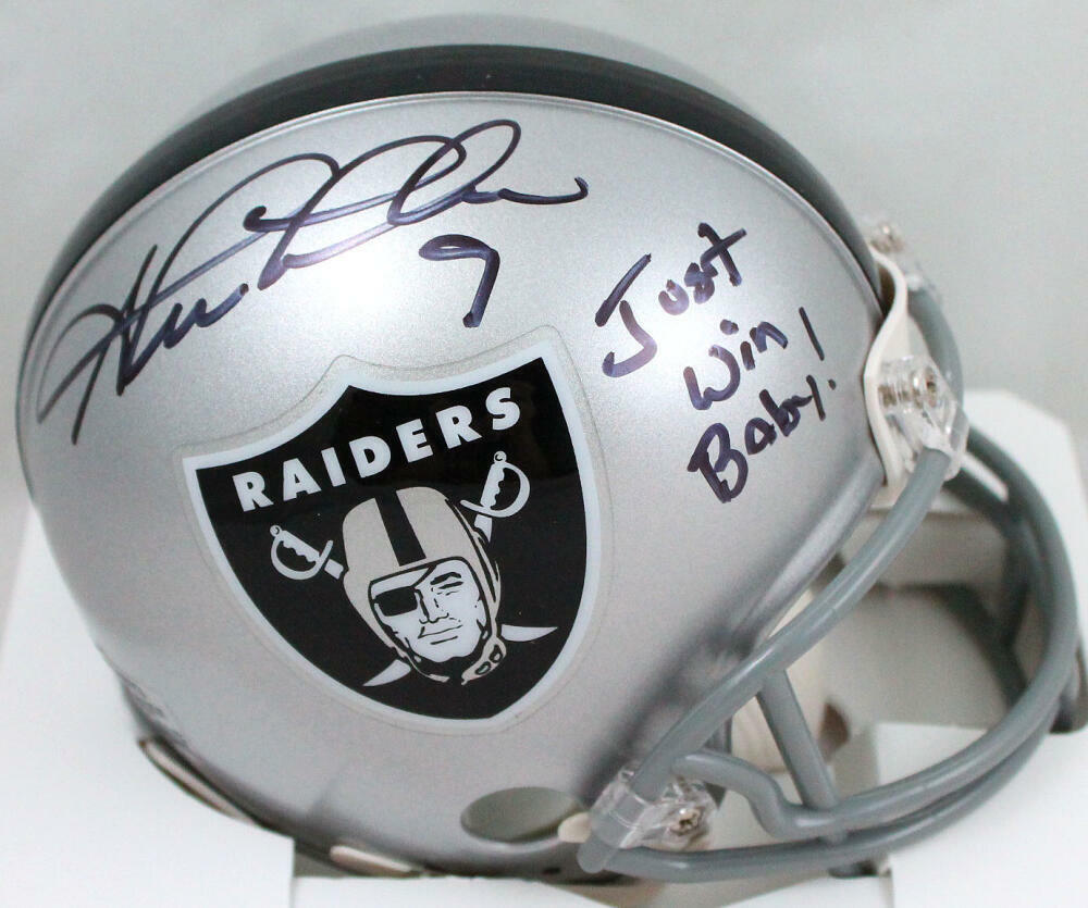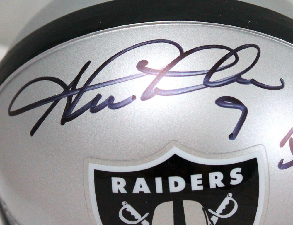 This is a stock photo, meaning the autograph placement may vary slightly, but your item will be virtually identical and in brand-new condition. Perfect for Raiders enthusiasts, this autographed mini helmet is a great addition to any sports memorabilia collection or a unique gift for a true fan!