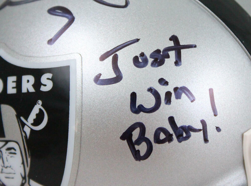 - "Just Win Baby" inscription, paying tribute to the iconic Raiders motto.