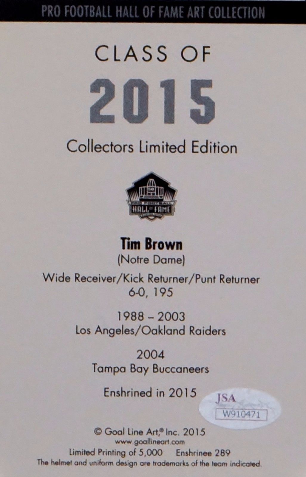Tim Brown Autographed Oakland Raiders Goal Line Art Card With HOF- JSA W Auth