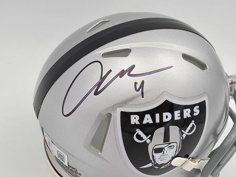 Very low stock (1 unit)$479Unit price /Unavailable Aidan O'Connell Autographed Oakland Raiders Silver Speed Mini Helmet Beckett BAS Witness #W975612