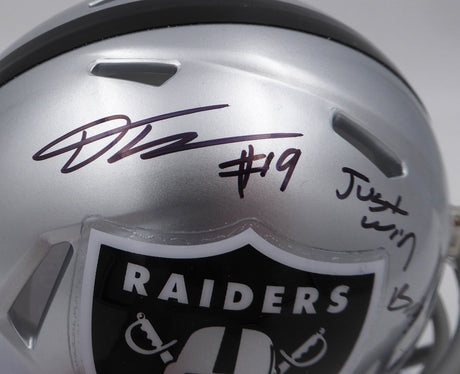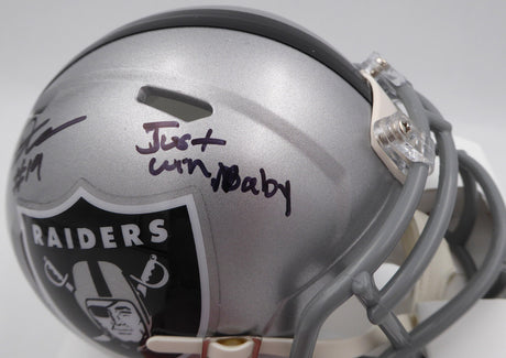 Very low stock (1 unit)$79Unit price /UnavailableDJ D.J. Turner Autographed Las Vegas Raiders Mini Helmet "Just Win Baby" Beckett BAS QR #2W133220