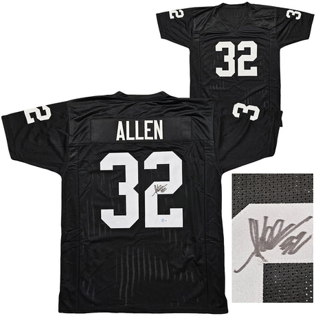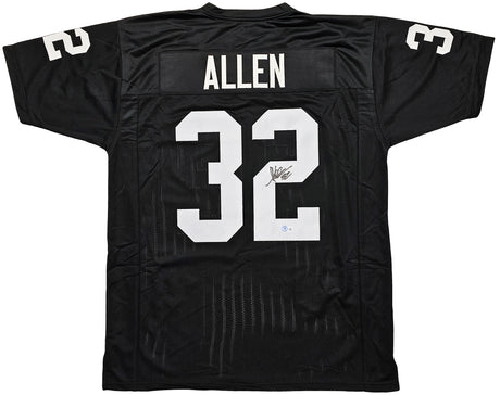 Oakland Raiders Marcus Allen Autographed Black Jersey Beckett BAS Witness Stock #215325