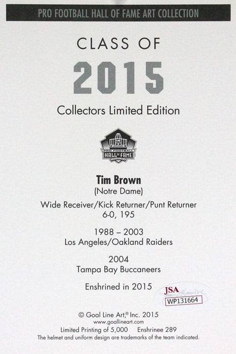 Tim Brown Autographed Oakland Raiders Goal Line Art Card With HOF- JSA W Auth